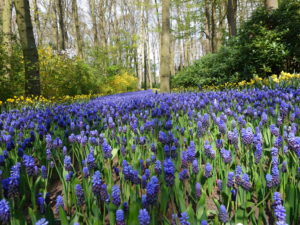Een oppervlakte met dezelfde kleur bloem zoals de blauwe druifjes hieronder leveren een rustig beeld op. De kleur blauw versterkt hierbij het rustige beeld.