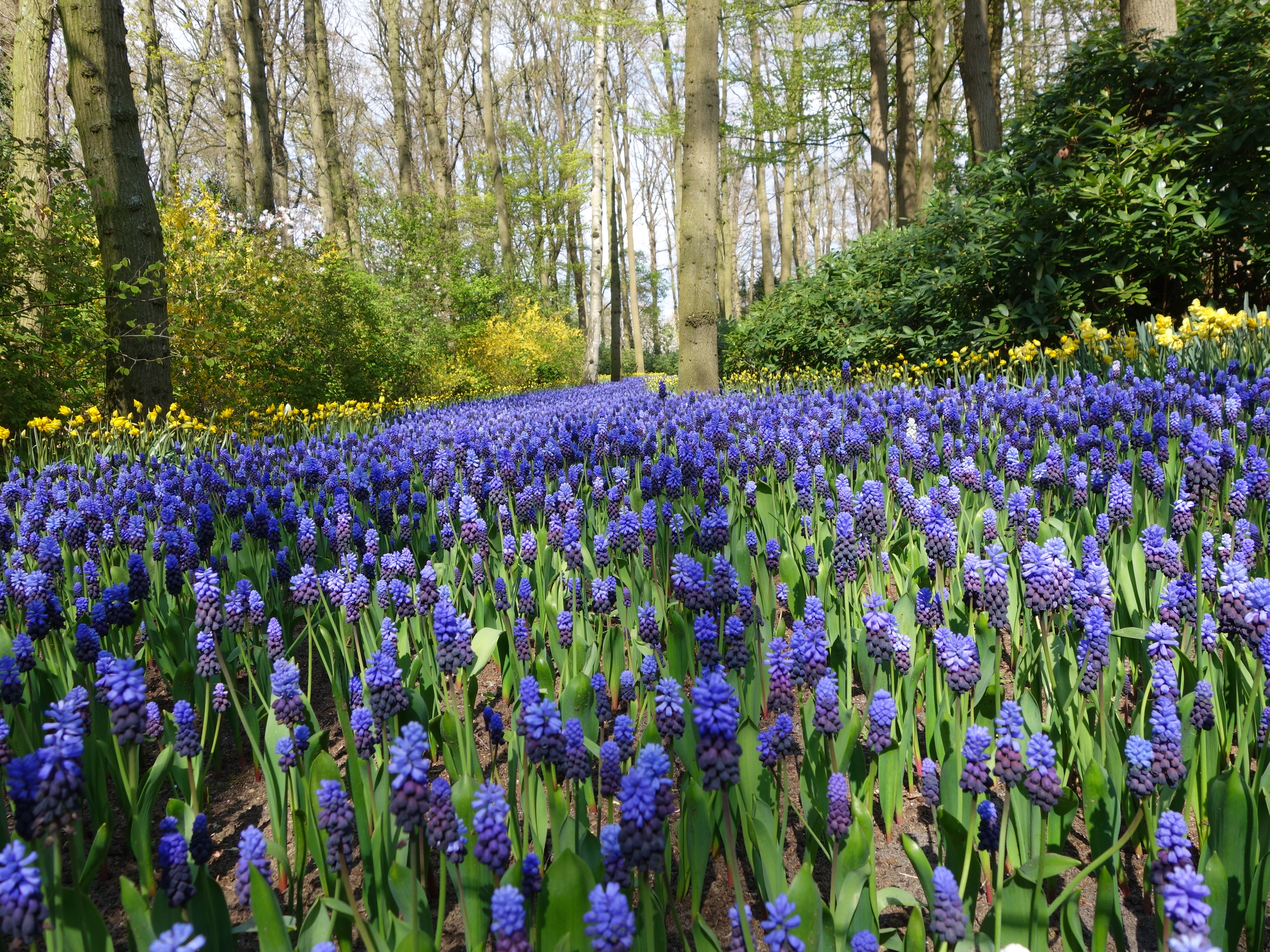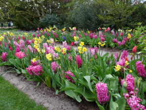 Wilt u verrast en verwonderd worden kies dan een bont palet. De hyacinten en tulpen geven de paars/magenta basiskleur aan, het geel van de narcissen maakt het geheel levendiger. Bedenk dat zonder het geel de border veel rustiger of saaier zou ogen. Het is maar net wat voor effect u wilt in de tuin.